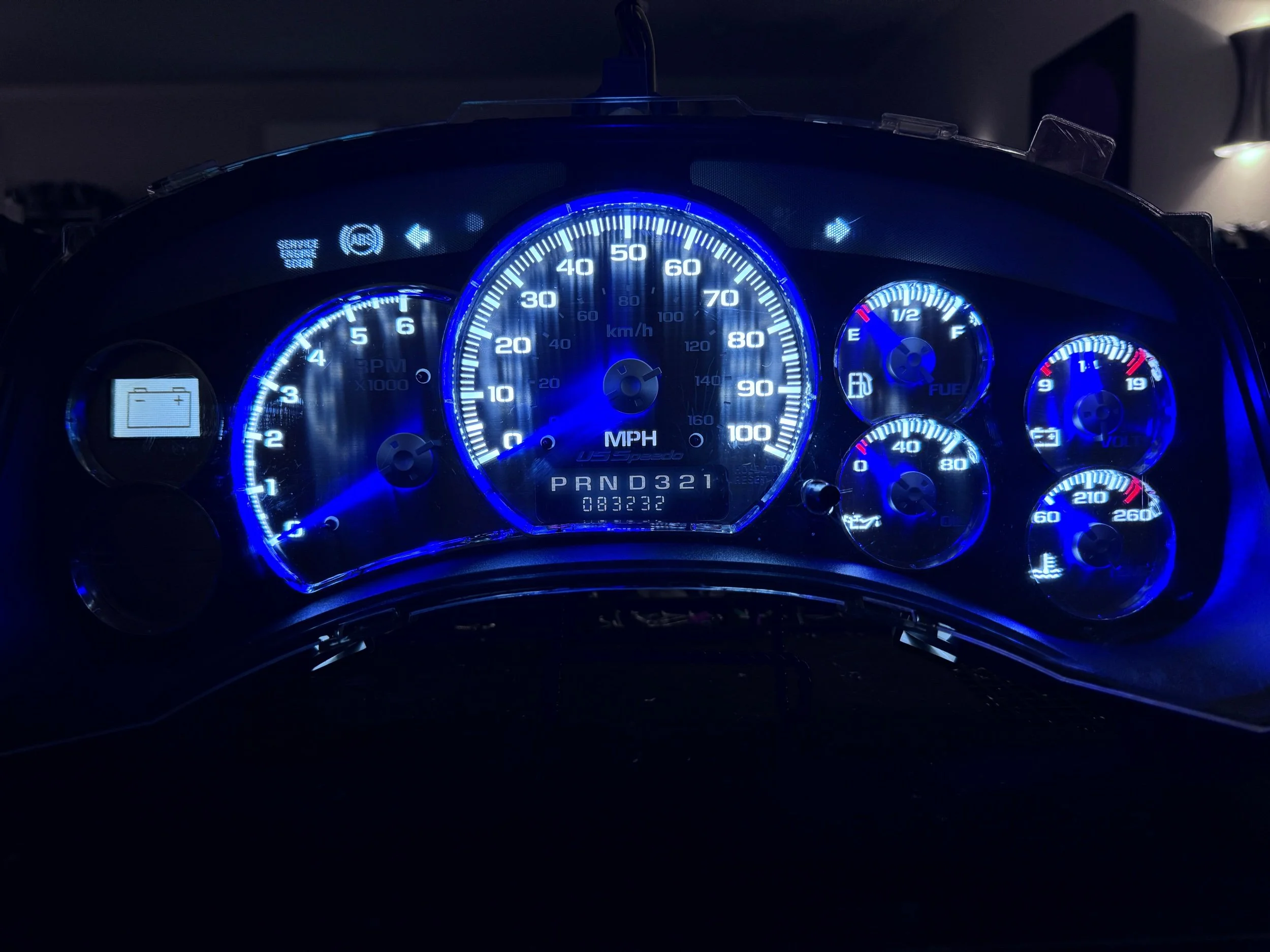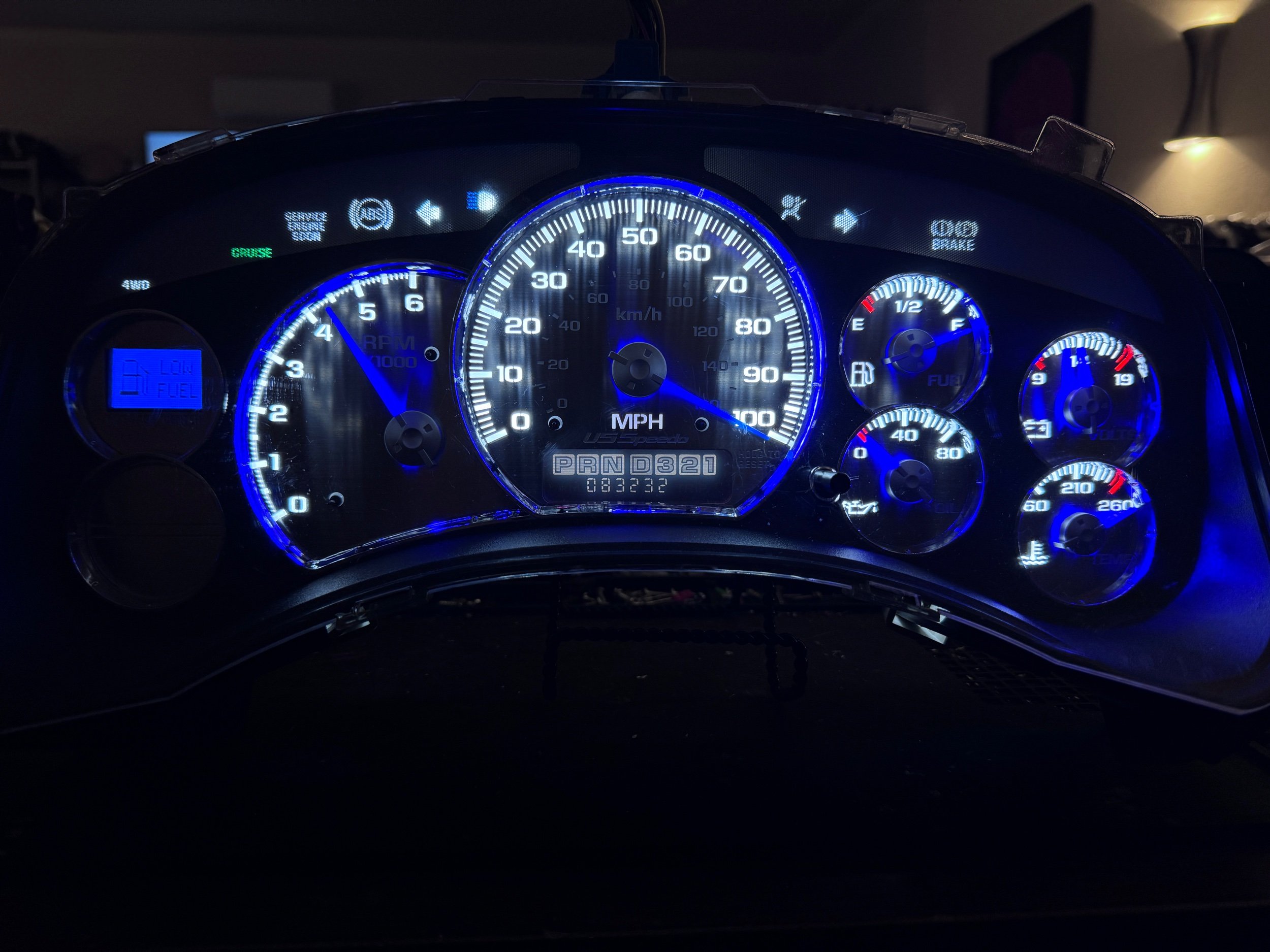 Stainless Overlay upgrade with Brights LEDs, white warning LEDs and Blue needles
