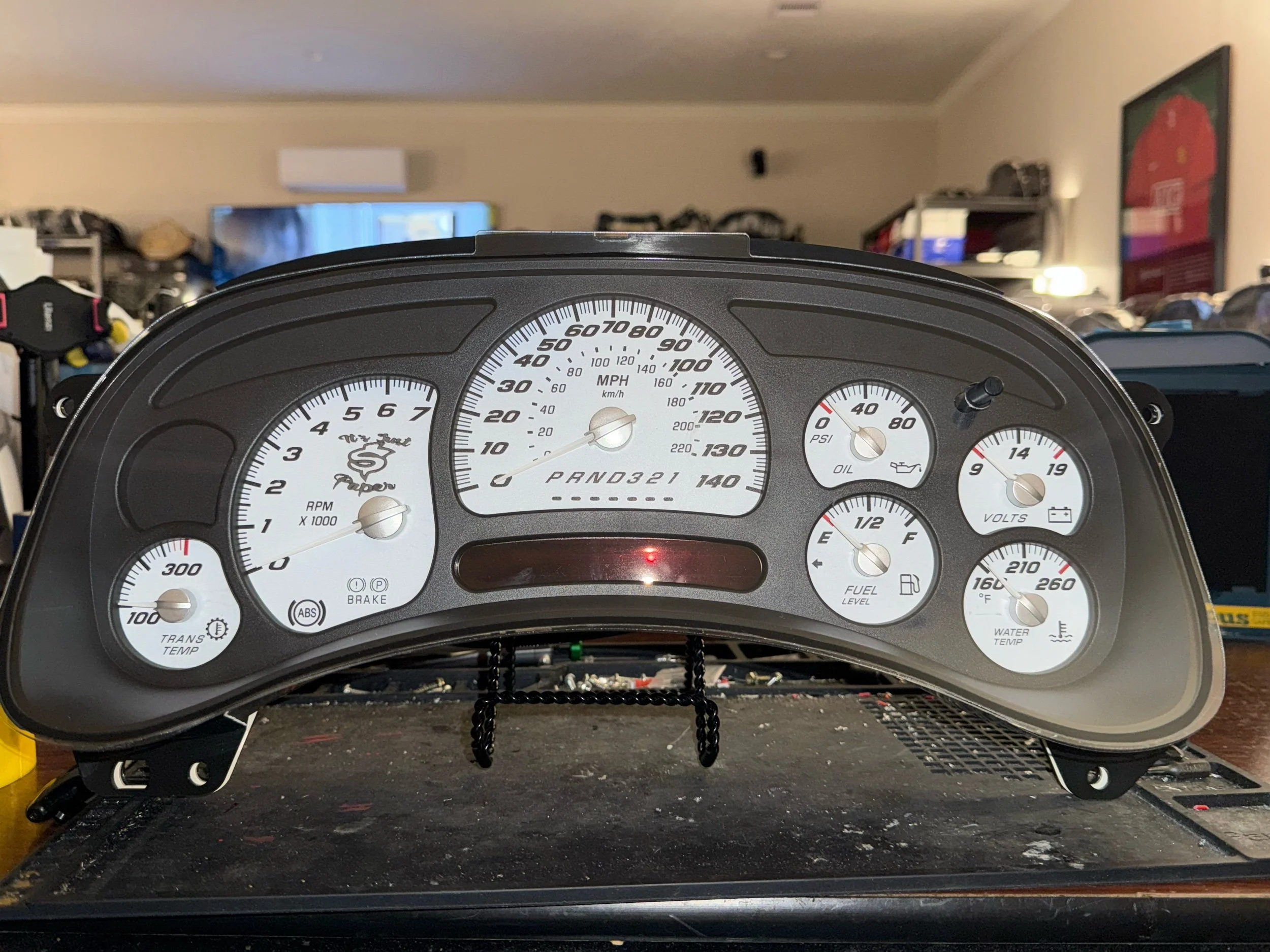 Fully Refurbished and Custom built with LEDs, engraved Overlay, grey and white needles, warning lights and New cover bezel.