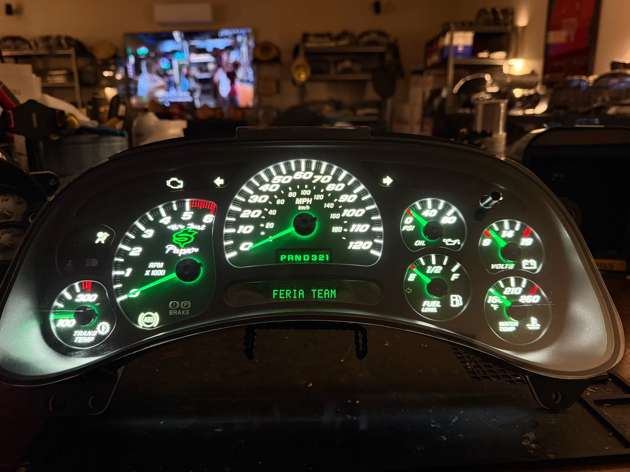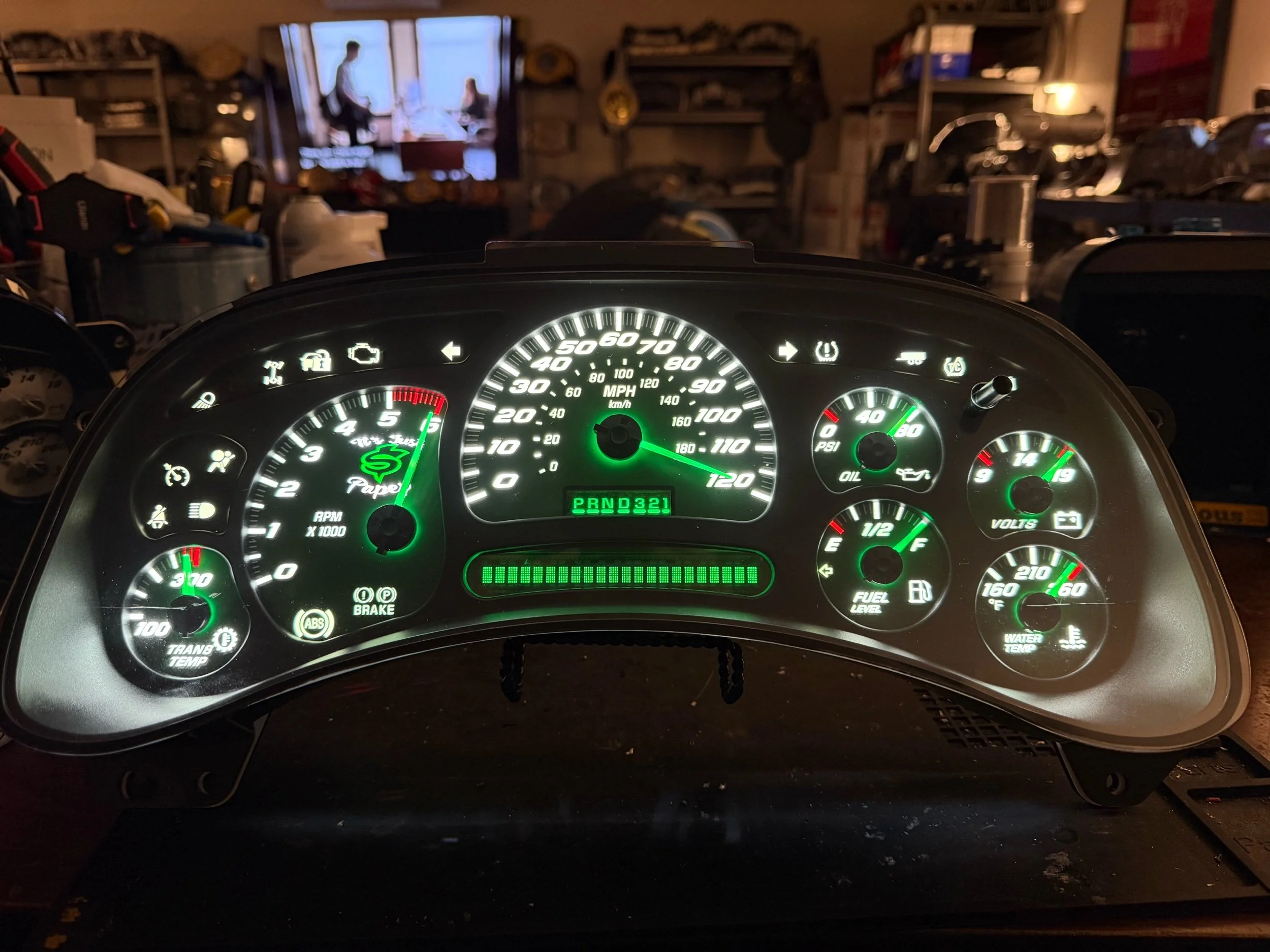 Fully Refurbished and Custom built with LEDs, engraved Overlay, illuminated needles, warning lights and New cover bezel.